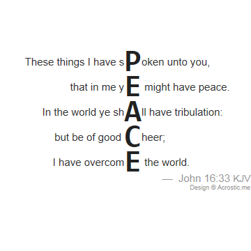 "I have told you these things, so that in me you may have peace. In this world you will have trouble. But take heart! I have overcome the world."